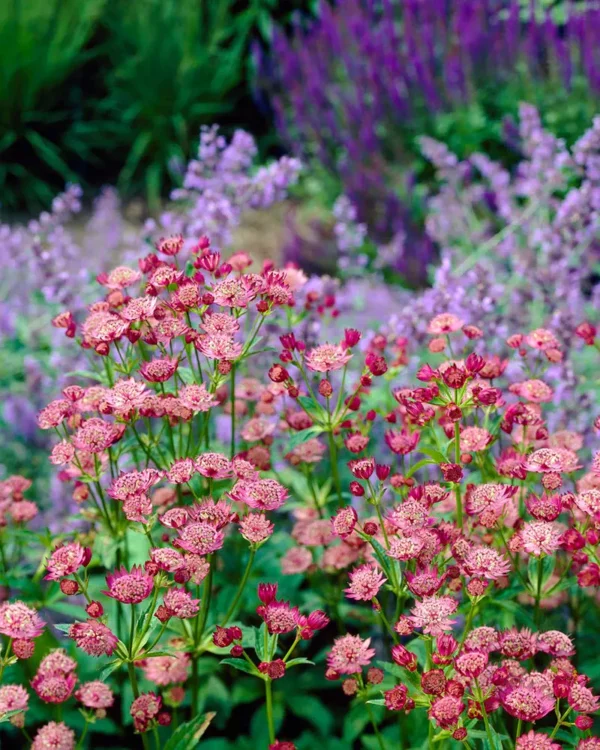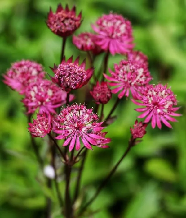 Sodrios, tamsiai raudonos spalvos astrancija, suteikianti gėlynams gylio ir elegantiško kontrasto. Žvaigždiški žiedai ilgai išlieka dekoratyvūs, o grakšti augimo forma puikiai dera su kitais daugiamečiais. Idealiai tinka pusiau pavėsingiems ir natūralistiniams gėlynams, mišrioms daugiamečių augalų kompozicijoms, pavėsiui po krūmais ar medžiais, sodinti grupėmis ar kaip spalvinį akcentą.