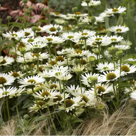 Baltažiedė ežiuolė, išsiskirianti švaria, elegantiška spalva ir tvirtais stiebais. Stambūs žiedai su kontrastingu centru suteikia gėlynams šviesos ir ramios estetikos, o ilgas žydėjimo laikotarpis užtikrina dekoratyvumą visą vasarą. Puikiai tinka saulėtiems daugiamečių gėlynams, modernioms ir natūralistinėms kompozicijoms, sodinti grupėmis ar kaip šviesų kontrastą ryškesnių spalvų augalams.